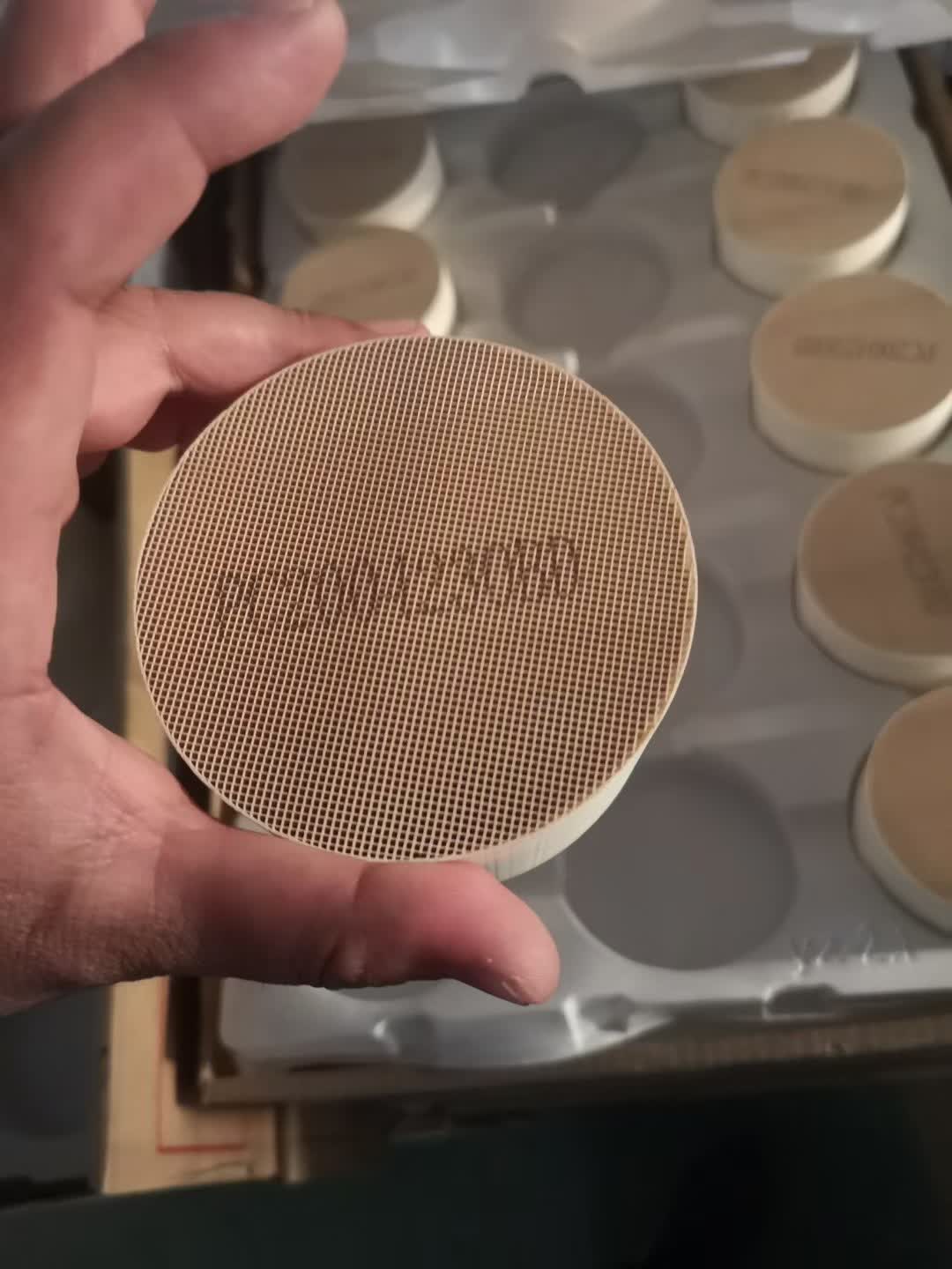 Composition: Typically, precious metals (Pd, Pt or Rh) with alumina and rare earth oxide, coated on a flow-through monolith.